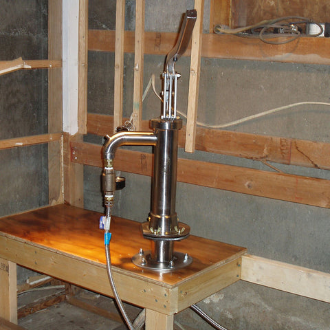 The Model 1900 includes a hose bibb for connecting a garden hose or the Bison Pumps Pressurizing Kit. With an elegant design, the Model 1900 is suitable for in-kitchen installation. It comes with food-grade O-rings and cup seals inside.