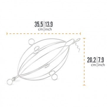 The Petromax Hanging Poultry Grill Basket turns your barbecue adventure into an original experience with extra aroma and an incomparable tinge of smokiness. It can be used to easily cook chicken, poulards, legs of lamb or other meat specialities to crispy perfection. The contents are held firmly in the two halves of the basket for cooking directly over an open fire. The swivel helps ensure an even cooking result. A link chain from which the Grill Basket can be hung provides almost continuous temperature regulation. With a total of 8 loops for hanging you will enjoy 360° browning. Cooking country-style roast chicken using flame power will become an unforgettable experience and a great success: The skin will be crispy all over and the meat exceptionally tender and aromatic.